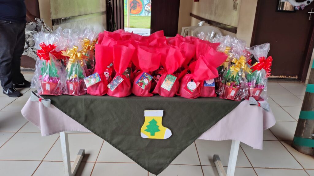Durante a confraternização, também foram distribuídos mini panetones aos participantes. Os brindes foram doados a partir de uma parceria realizada ao longo do ano, após a realização de palestras nas quatro lojas dos Supermercados Rondon.