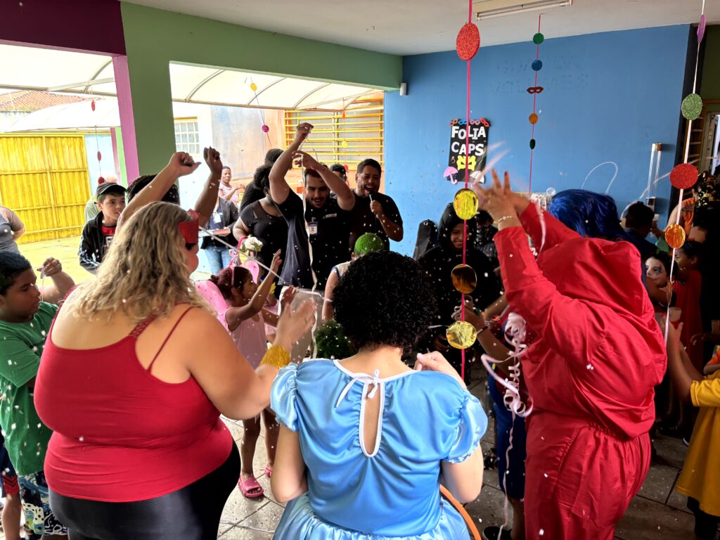 Serpentinas, confetes, brincadeiras e muita alegria marcaram o Folia CAPS, na última quarta-feira (11/02). O evento, que celebrou e resgatou o carnaval de bloquinhos, foi realizado no CAPS-Infantojuvenil, no bairro Água Branca I, em Araçatuba, e contou com a participação de dezenas de usuários da rede.
