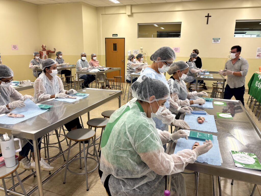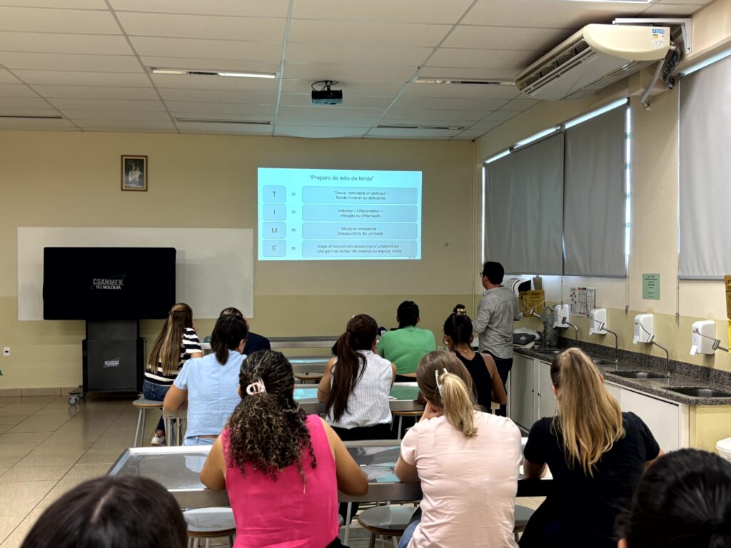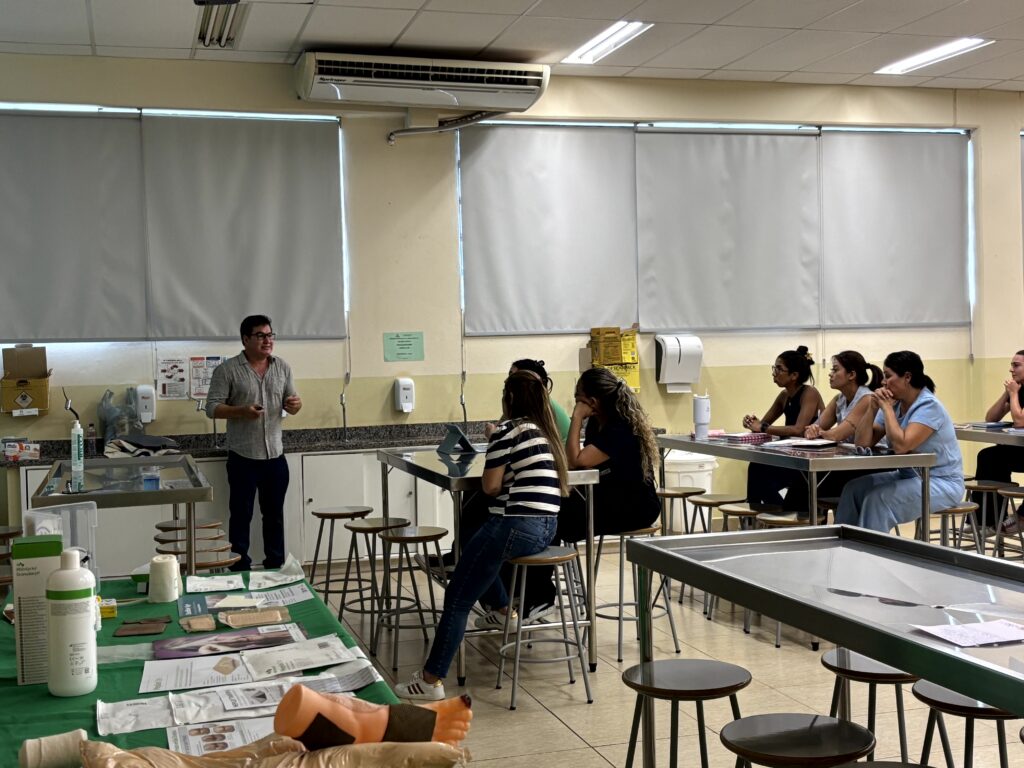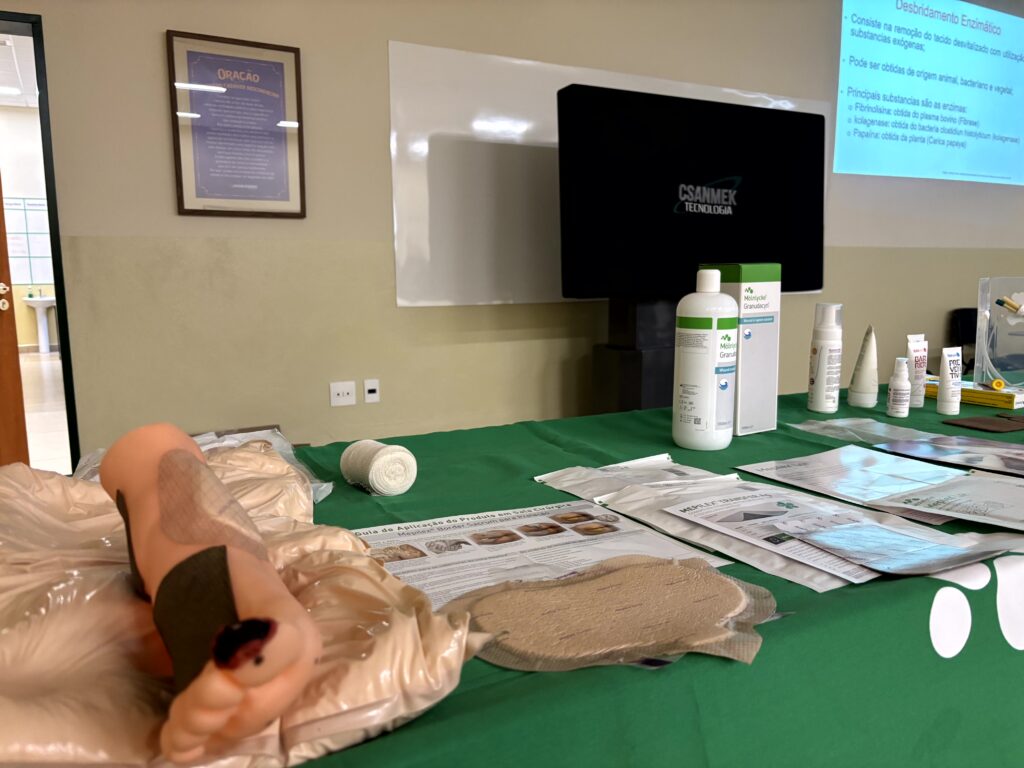 Durante a formação, foram discutidos os diferentes tipos de tecidos presentes nas feridas, os principais métodos e técnicas de desbridamento, suas indicações e contraindicações, além do desenvolvimento da habilidade manual para o manuseio seguro de instrumentos cortantes.