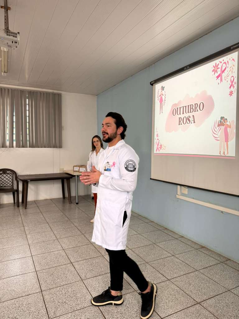 As palestras abordaram o tema “Rastreio de câncer de colo de mama e útero”, com o objetivo de conscientizar mulheres sobre a importância dos exames preventivos e do acompanhamento regular nas unidades de saúde.