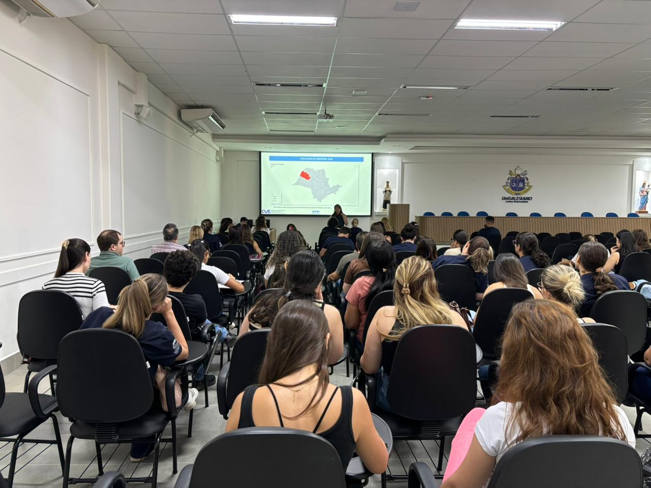 Médicos, enfermeiros e gerentes das UBSs (Unidades Básicas de Saúde) participaram do encontro, realizado no UniSALESIANO. A capacitação foi ministrada pela diretora da Vigilância Epidemiológica, Priscila Cestaro, e pela diretora do Grupo de Vigilância Epidemiológica, Milene Ura.